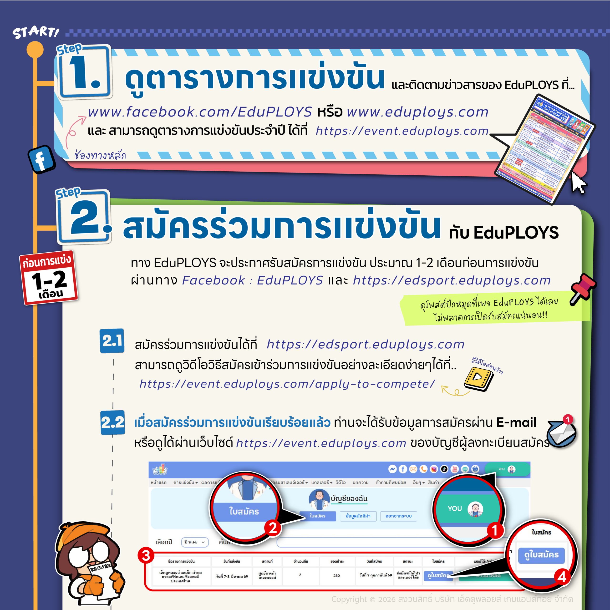 ลิงก์ วิดีโอวิธีสมัครเข้าร่วมการแข่งขัน : https://event.eduploys.com/apply-to-compete/