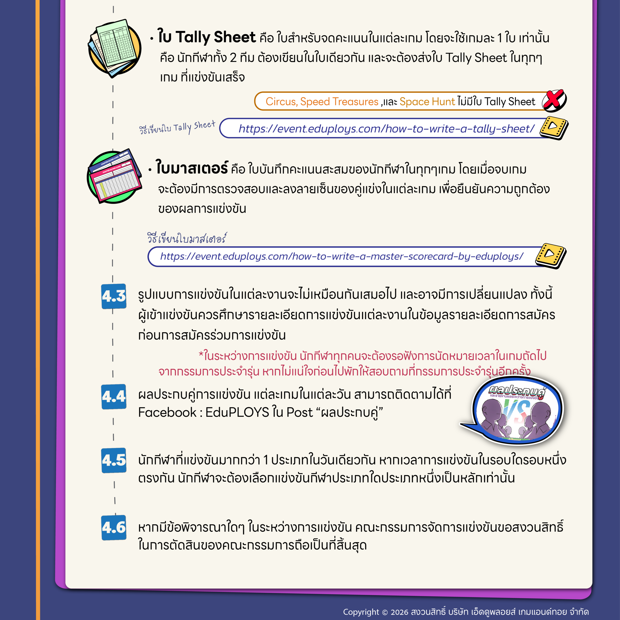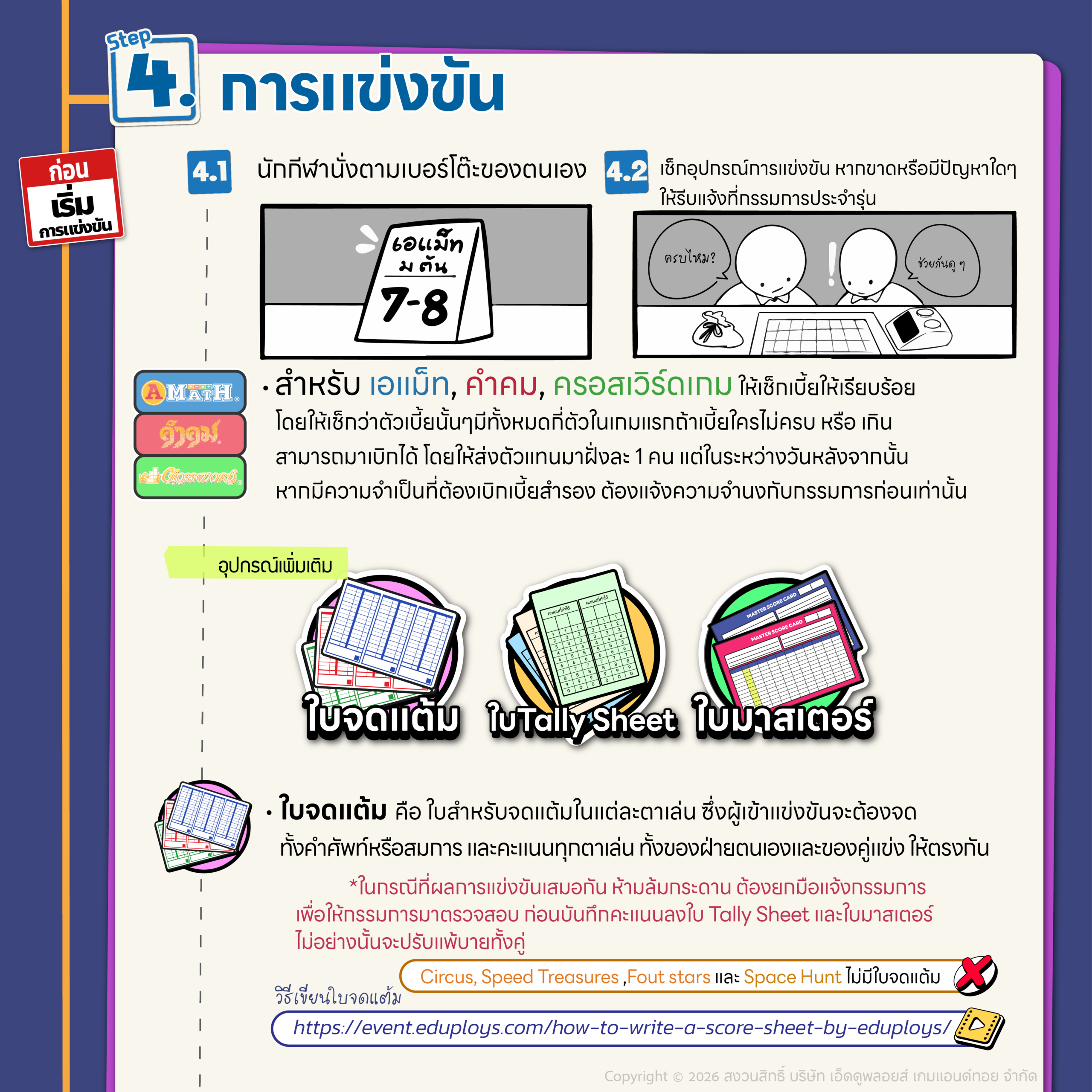 ลิงก์ วิธีเขียนใบจดแต้ม : https://event.eduploys.com/how-to-write-a-score-sheet-by-eduploys/